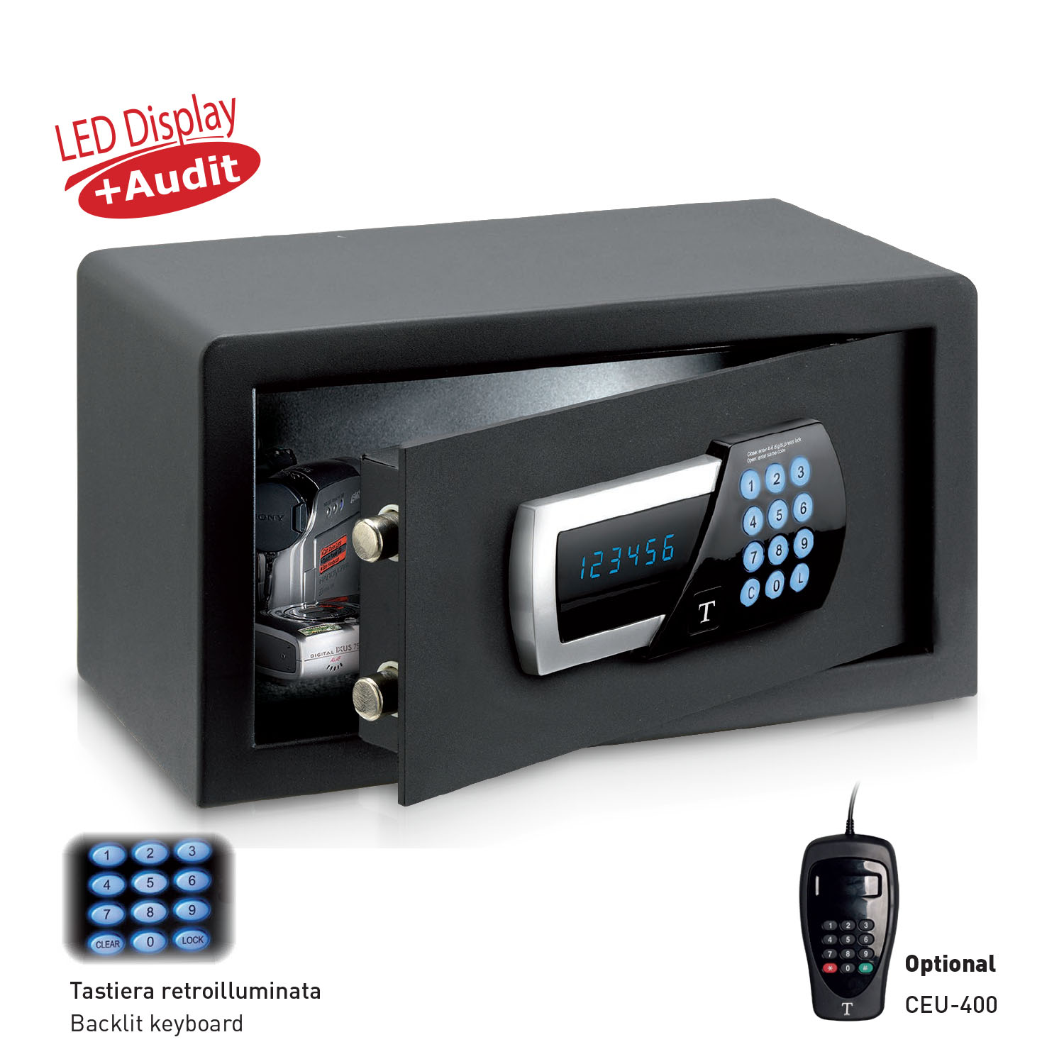 CASSAFORTE COMBINAZIONE ELETTRONICA DISPLAY LED TECHNOMAX HOTEL TSW/1HN