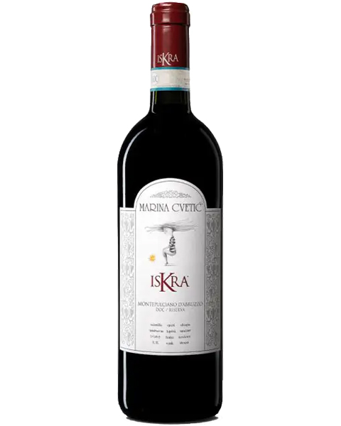 Vino rosso Montepulciano d’Abruzzo DOC Riserva di Masciarelli per la linea Iskra Marina Cvetic. Elegante e fruttato, con un gusto intenso di liquirizia ed una piacevole freschezza nel finale. Ideale con piatti di carne rossa, funghi e selvaggina.