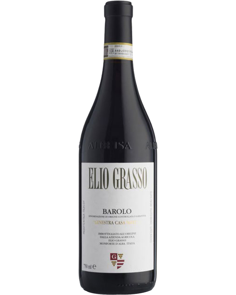 Vino rosso Barolo DOCG di Elio Grasso a marchio Ginestra Case Mate prodotto con uve nebbiolo autoctone della zona delle Langhe dal vigneto della Ginestra. Un grande vino rosso che regala profumi di frutti di bosco ed un gusto intenso e complesso, con ottimi tannini e molto equilibrato. Perfetto per piatti di carne rossa e selvaggina.