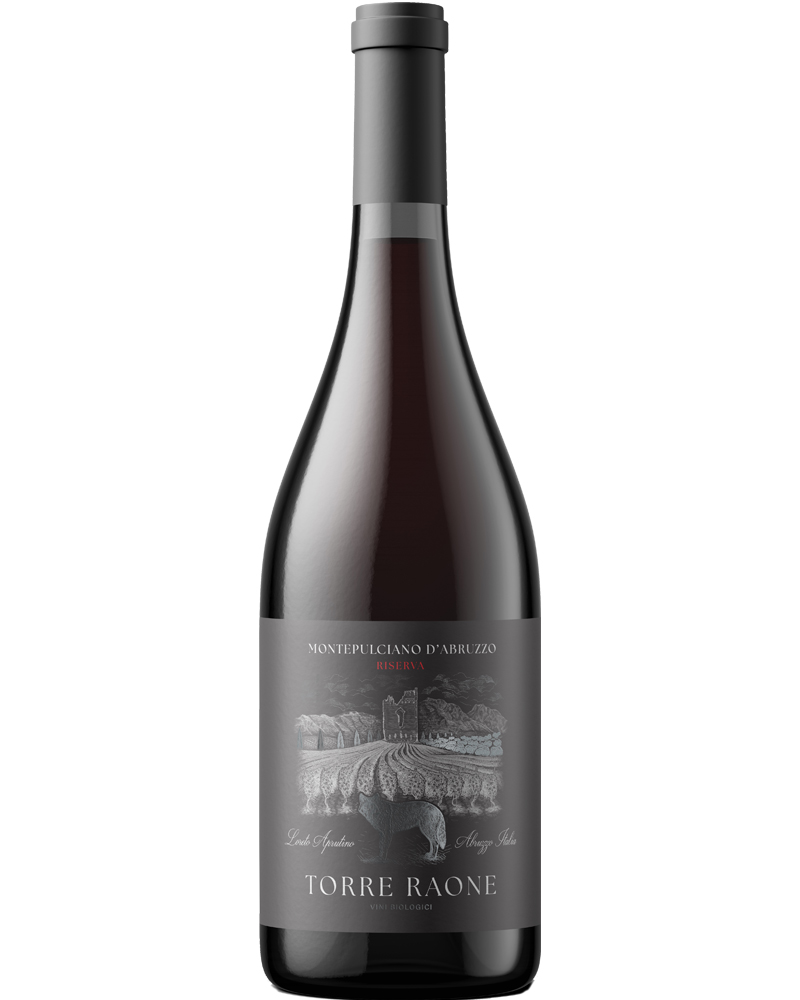 Vino rosso Montepulciano d’Abruzzo Doc Riserva di Torre Raone. Vino armonioso e caldo, con una morbidezza fruttata e un buon equilibrio. Bottiglia simbolo della storia della cantina abruzzese.