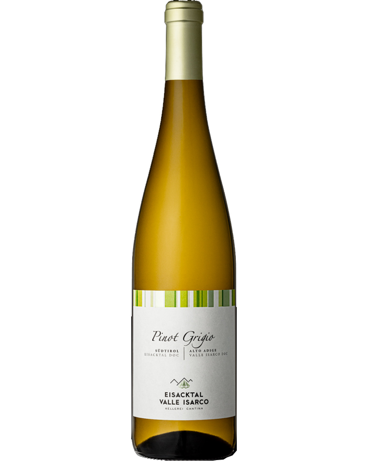 Vino bianco Pinot Grigio prodotto da Cantina Valle Isarco in Trentino Alto Adige dal profumo pieno ed elegante con un gusto fine e mandorlato. Perfetto con antipasti, primi di pesce e piatti con funghi.