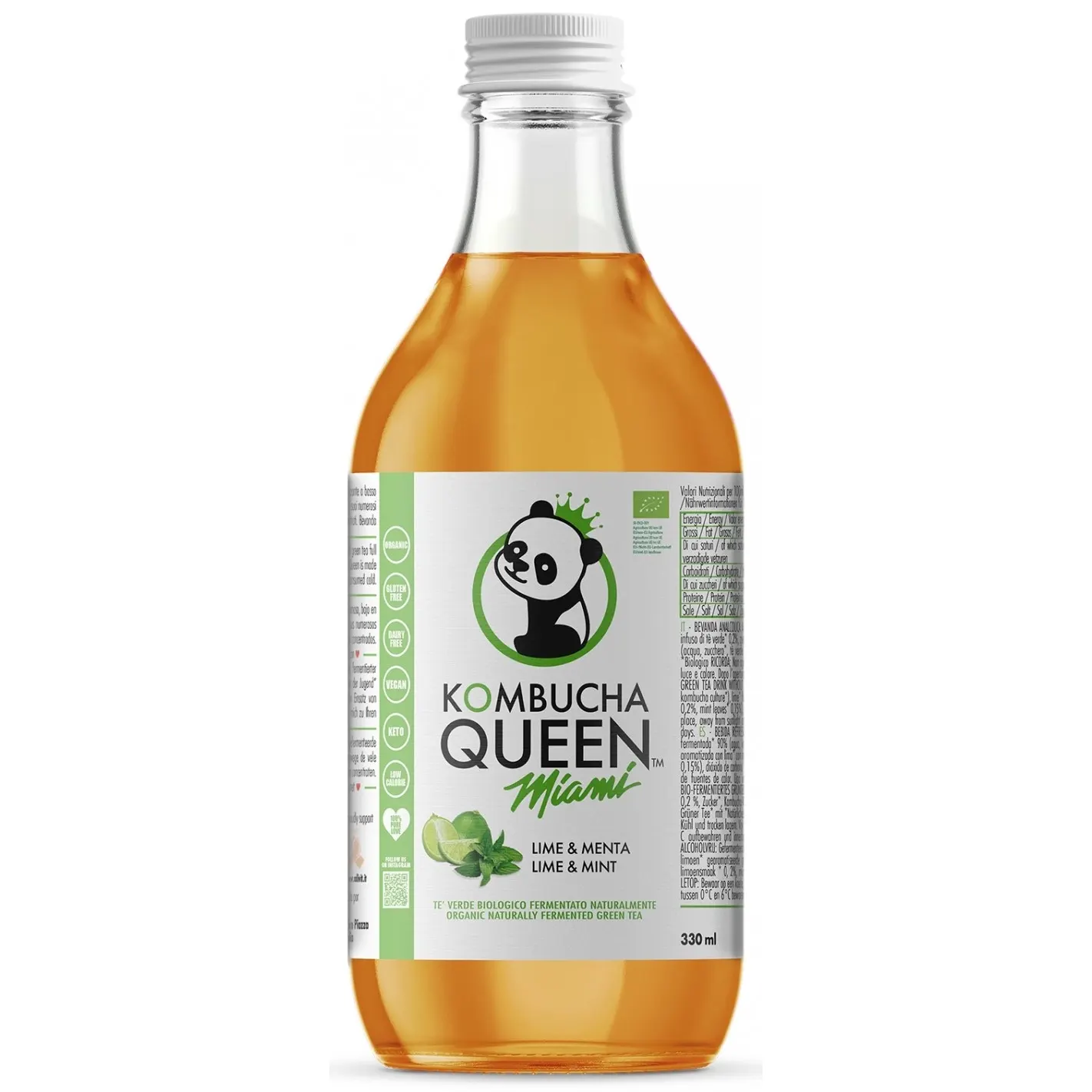 Kombucha Queen Lime & Menta è un tè verde fermentato, conosciuto anche come l’elisir della gioventù per i suoi numerosi benefici. Kombucha Queen è ottenuto da 100% ingredienti naturali senza l’uso di concentrati o ingredienti artificiali.