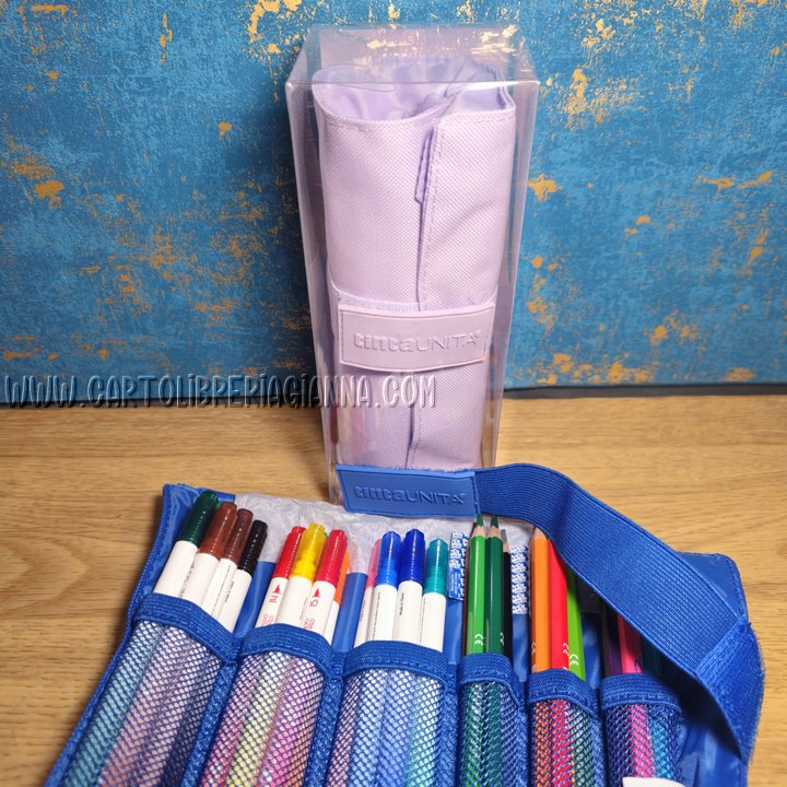 Tinta unita – Astuccio Skyroll con 18 pastelli e 18 pennarelli bipunta Brush