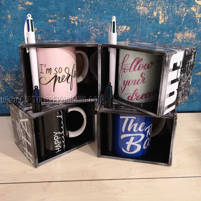 Mug in ceramica con scatola regalo e penna Bic 4 colori inclusa nella confezione!