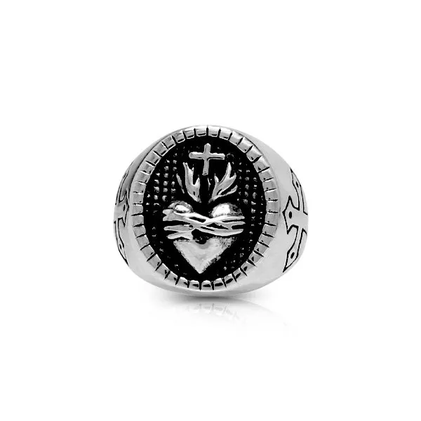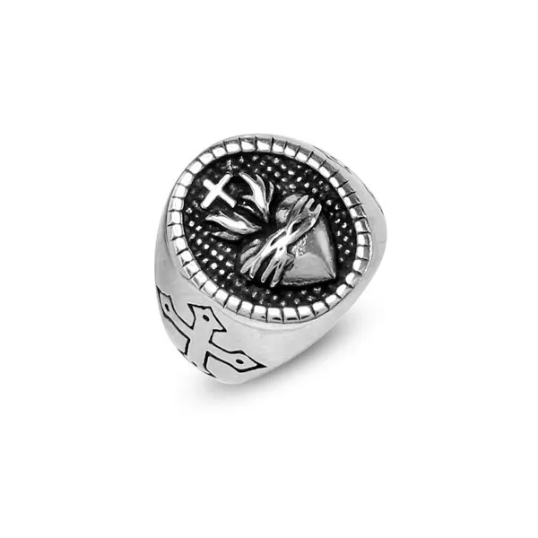 L’Anello Cuore Sacro Brunito è completamente realizzato a mano in acciaio anallergico con la tecnica della cera persa FREE NICHEL e bruniture.