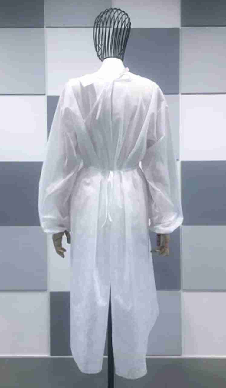 Camici monouso (non sterili) bianchi in TNT idrorepellente– 30 gr. Lunghezza 108 mm Torace 134 mm polsino elastico – confezione da 5 pz. CAM30 Novamedisan