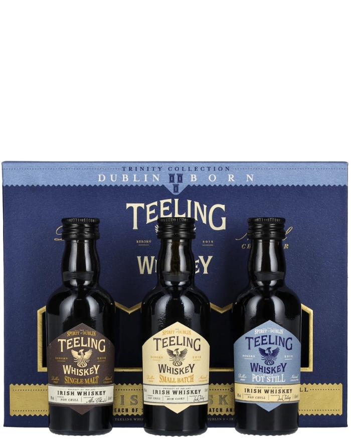 Assaggio tripartito nel cuore dell’innovazione della distilleria Teeling: un percorso dal Single Grain dolce e gentile, passando per il vellutato Small Batch, fino al fruttato e complesso Single Malt. Tre bottiglie ideali per scoprire la versatilità e qualità premium dei whiskey irlandesi moderni. Una fantastica idea regale.